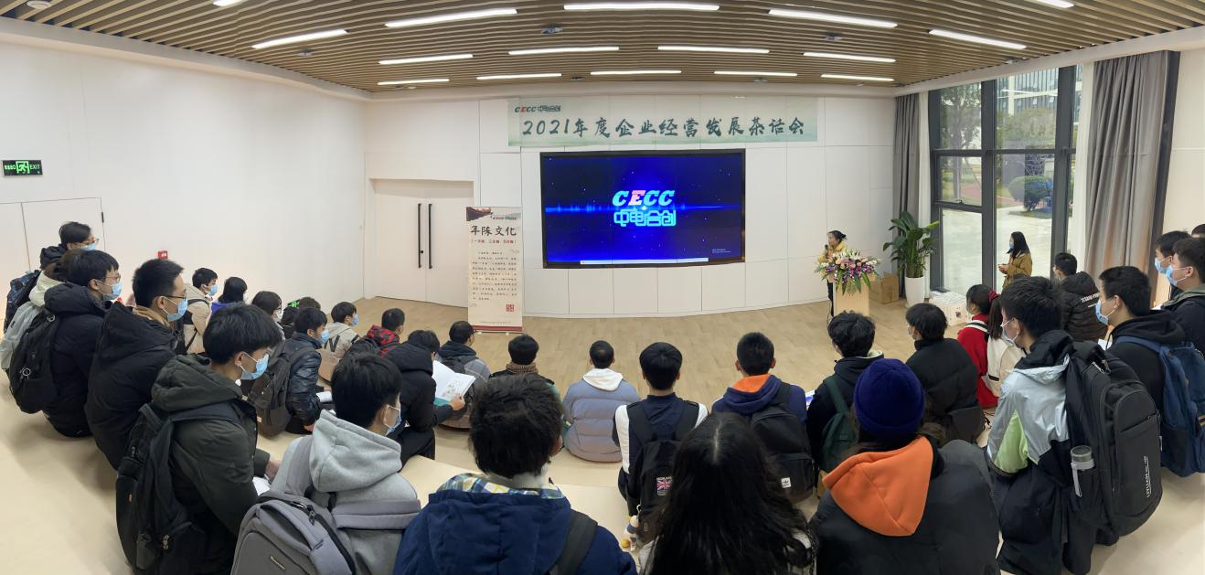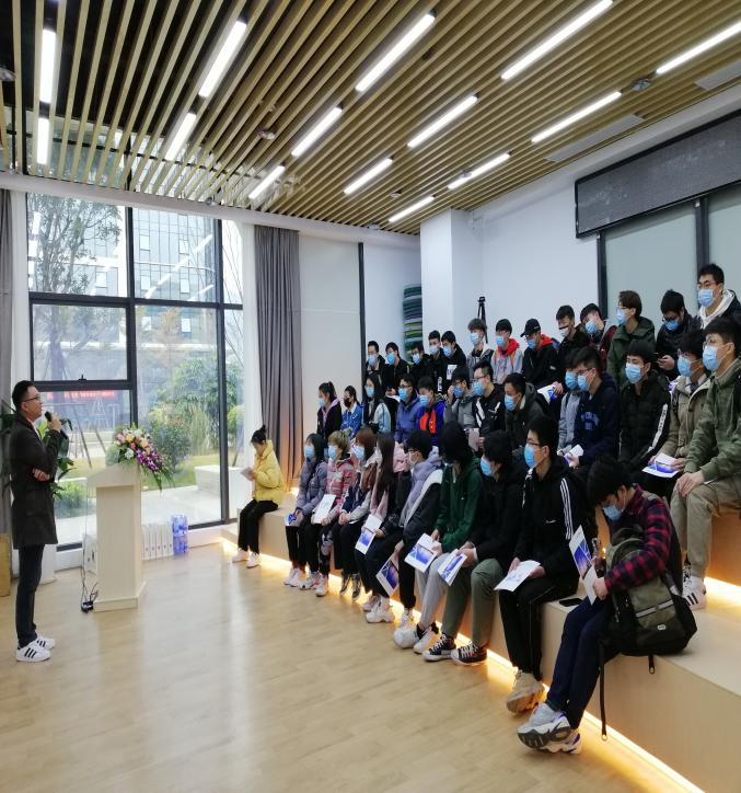 紧接着,由林烁同学、高小蝶同学为闽江学院师生介绍中电合创的企业发展历程,通过一年一度拔河比赛、“最美工位”活动等举例介绍企业文化。