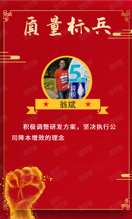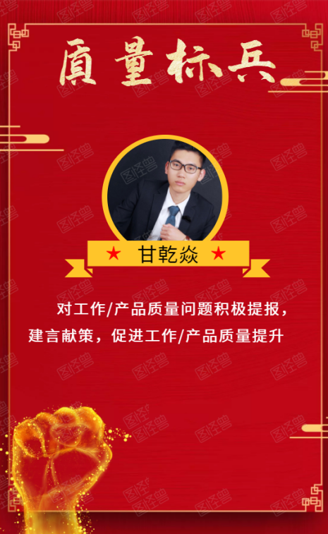 陈进炎、甘乾焱、翁斌三位同学在4月的质量评优活动表现突出,获得质量标兵奖。陈进炎和甘乾焱两位同学对工作/产品质量问题积极提报,建言献策,促进了公司产品/工作质量提升;翁斌同学在产品研发过程中,能积极调整研发方案,坚决执行公司降本增效的理念。其中,翁斌同学在标兵代表发言中讲到“奖不奖的无所谓,主要是做好自己的本职工作,多用心”,为提升公司产品质量默默付出,不以名利为目的,在产品研发中发光发热。希望全体中电人以质量标兵为标杆,以质量标兵为榜样,积极反馈产品、工作质量问题,梳理优化内部流程,为提质增效,壮大产业做出努力!