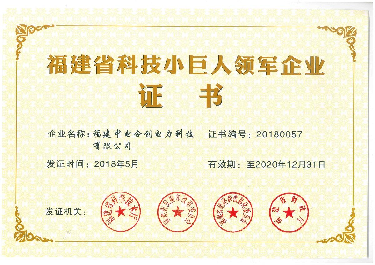 祝贺我司中电合创2018年入库福建省科技小巨人领军企业,并于2018年5月取得证书,标志着我司在行业内的实力得到了进一步的提升和认可!