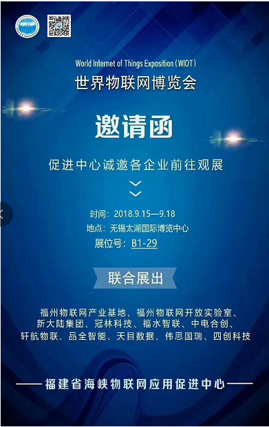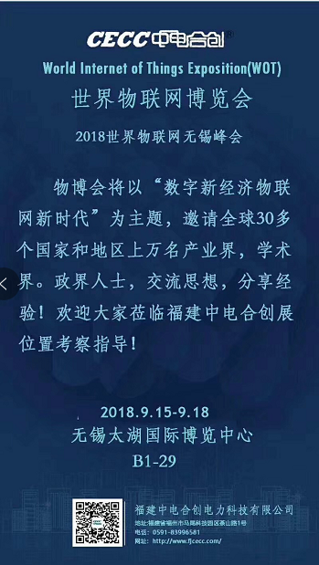2018年世界物联网博览会将于9月15日至9月18日在江苏省无锡太湖国际博览中心举行。中电合创将携电力设备环境监控解决方案亮相博览会智慧城市生活B1-29 福州物联网产业基地。