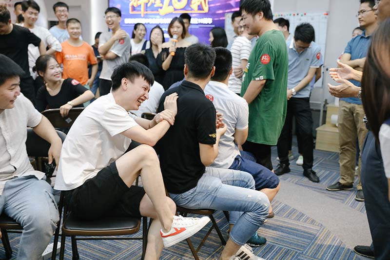 个人都专注着眼前的凳子,连场下的小伙伴们都紧张万分,游戏间夹着大家的欢声笑语,将现场的气氛推向了一个小高