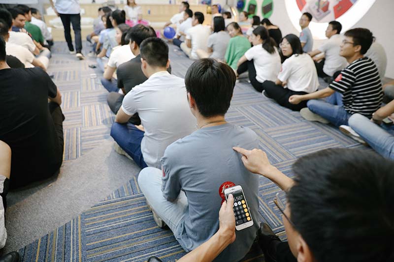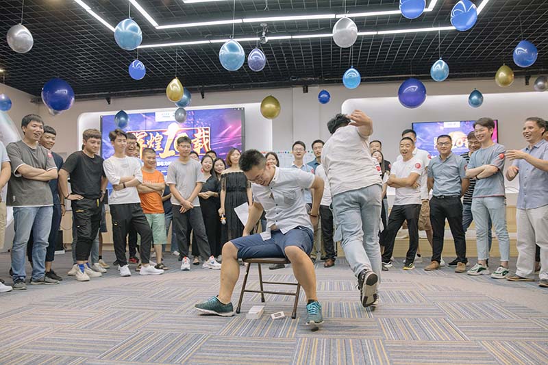 抢凳子:总共8个小队,每队派出2名成员,随着音乐声跑动起来,音乐声停未抢到凳子的队员淘汰。游戏进行中,每