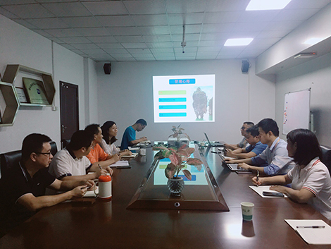 人等中层管理,由研发部经理吴同金主讲,分享管理心得,除管理人员学会分配任务,培养自身影响力,定期自省等,吴